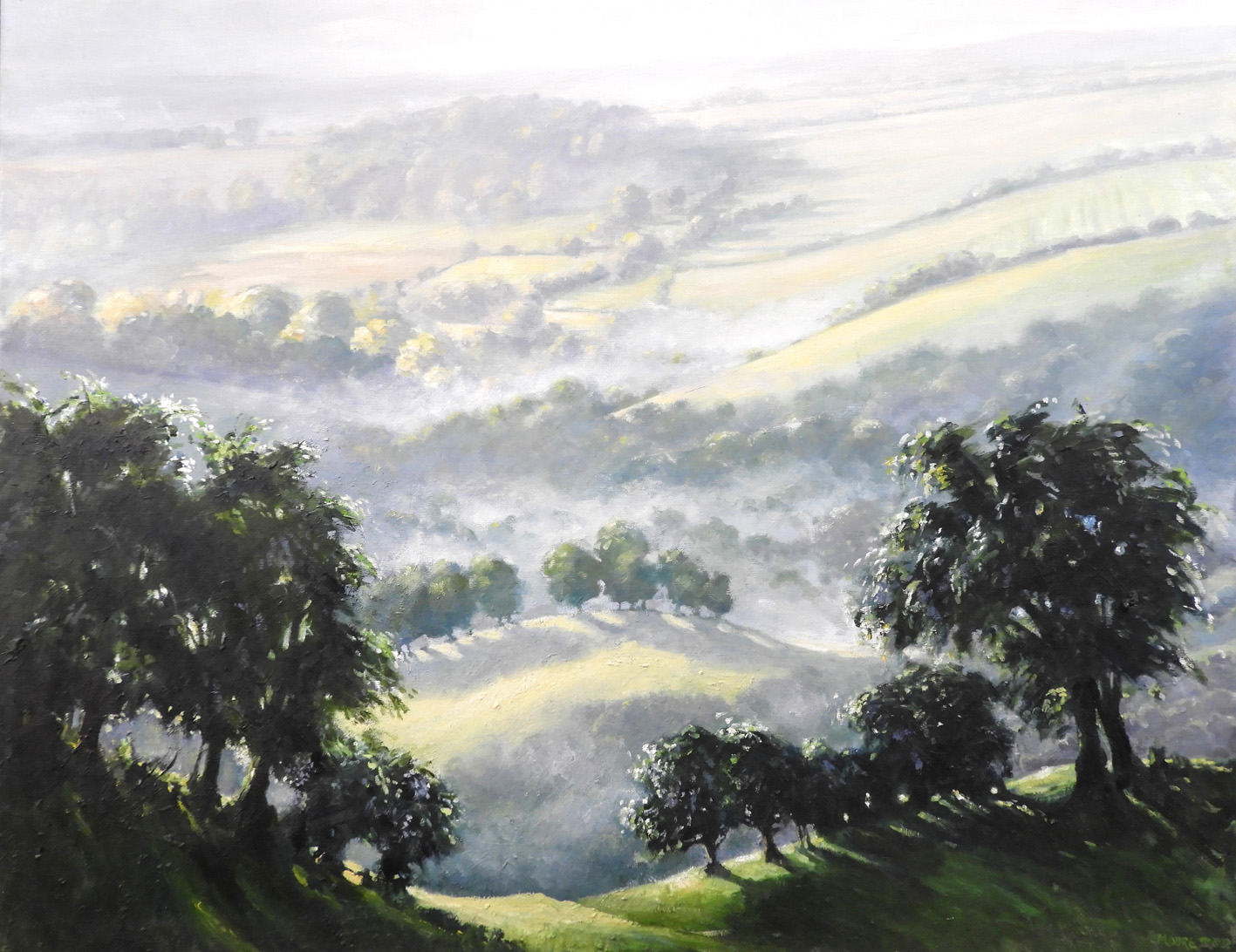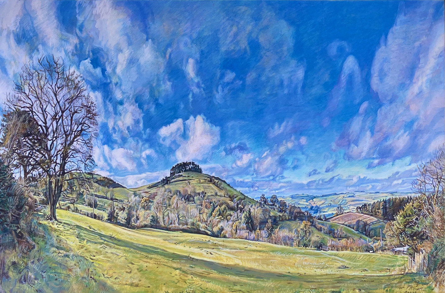 Ronald Moore ‘Aspers Wood from Merbach Hill’. oil on canvas