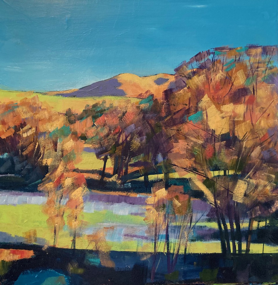 A mountain is defined as being over one thousand feet (300m) above its surrounding land and usually has a pronounced summit and steeper more defined sides than a hill. A hill is expected to be a more modest rounded undulation in the landscape. Mountains have the connotation that suggests being imposing, rugged, challenging, lofty and superior and are inevitably named edifices, whilst hills carry expectations of approachability, gentler inclines, smoother surfaces, and contours. Most hills have names, but our perceptions are usually more usually of them being less dramatic than their fellow mountains. However, for this project the central subject of each artist’s vision is described as a hill but of course many an artist has sought the sublime among mountains!
